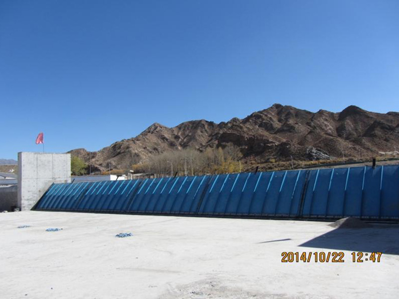 氣盾壩,是一種新型的擋水結(jié)構(gòu),其兼具橡膠壩和鋼閘門的優(yōu)點,剛?cè)岵?,該結(jié)構(gòu)由美國0HI公司于20世紀90年代研制而成.其結(jié)構(gòu)主要由盾板、充氣氣囊及控制系統(tǒng)等組成。利用充氣氣囊支撐盾板擋水,氣囊排氣后塌壩,氣囊臥于盾 板下,可避免河道砂石、冰凌等對壩袋的破壞;氣囊內(nèi)填充介質(zhì)為氣體,塌壩迅速:各個部件均為預(yù)制部件,安裝工期短;盾板及氣囊模塊化,便于修復(fù)。