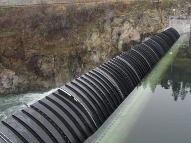 氣盾壩,是一種新型的擋水結構,其兼具橡膠壩和鋼閘門的優(yōu)點,剛柔并濟,該結構由美國0HI公司于20世紀90年代研制而成.其結構主要由盾板、充氣氣囊及控制系統(tǒng)等組成。利用充氣氣囊支撐盾板擋水,氣囊排氣后塌壩,氣囊臥于盾 板下,可避免河道砂石、冰凌等對壩袋的破壞;氣囊內(nèi)填充介質(zhì)為氣體,塌壩迅速:各個部件均為預制部件,安裝工期短;盾板及氣囊模塊化,便于修復。